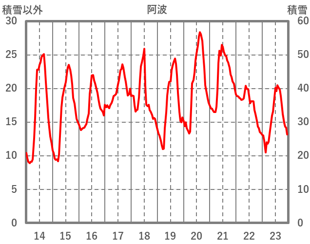 | 日 | 時 | 気温 | 降水 | 風向/風速 | 日照 | 積雪 | 降雪 |