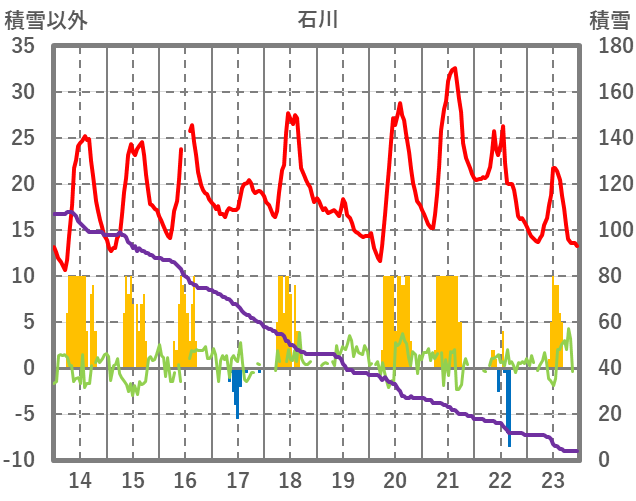 | 日 | 時 | 気温 | 降水 | 風向/風速 | 日照 | 積雪 | 降雪 |