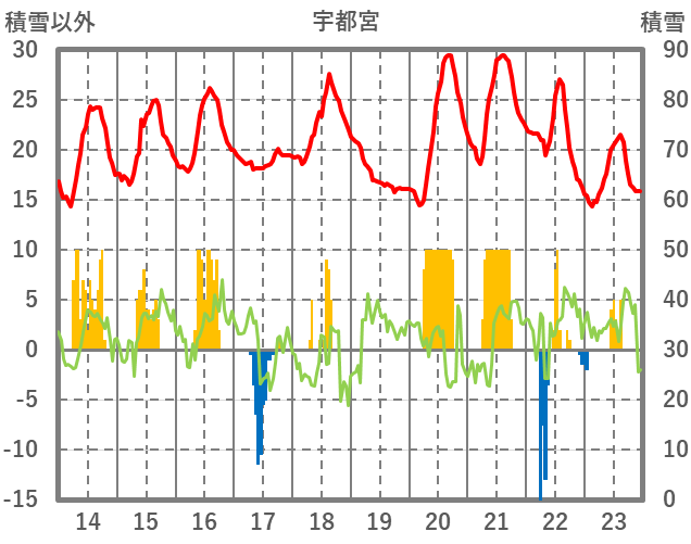 | 日 | 時 | 気温 | 降水 | 風向/風速 | 日照 | 積雪 | 降雪 |