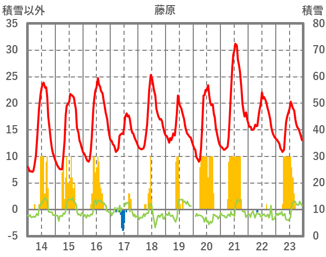 | 日 | 時 | 気温 | 降水 | 風向/風速 | 日照 | 積雪 | 降雪 |