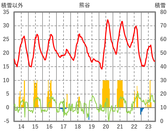 | 日 | 時 | 気温 | 降水 | 風向/風速 | 日照 | 積雪 | 降雪 |