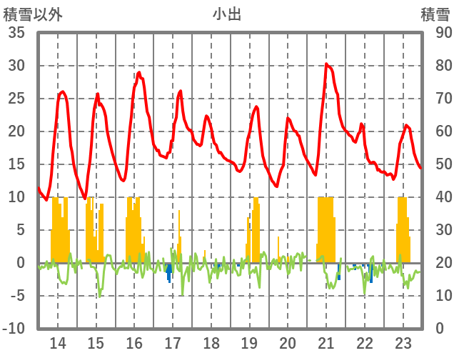 | 日 | 時 | 気温 | 降水 | 風向/風速 | 日照 | 積雪 | 降雪 |