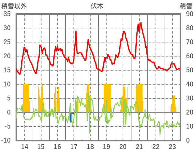 | 日 | 時 | 気温 | 降水 | 風向/風速 | 日照 | 積雪 | 降雪 |