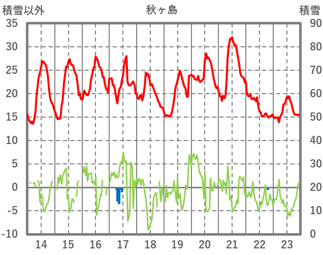 | 日 | 時 | 気温 | 降水 | 風向/風速 | 日照 | 積雪 | 降雪 |