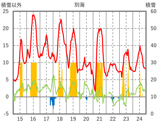 | 日 | 時 | 気温 | 降水 | 風向/風速 | 日照 | 積雪 | 降雪 |