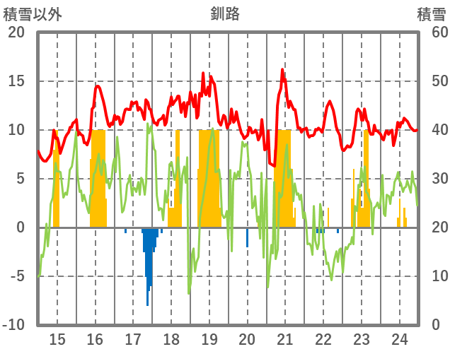 | 日 | 時 | 気温 | 降水 | 風向/風速 | 日照 | 積雪 | 降雪 |