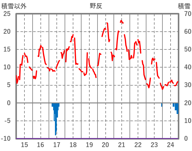 | 日 | 時 | 気温 | 降水 | 風向/風速 | 日照 | 積雪 | 降雪 |