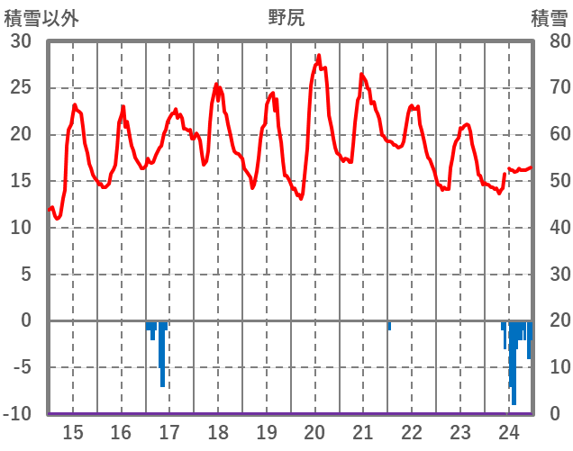 | 日 | 時 | 気温 | 降水 | 風向/風速 | 日照 | 積雪 | 降雪 |