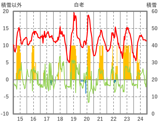 | 日 | 時 | 気温 | 降水 | 風向/風速 | 日照 | 積雪 | 降雪 |