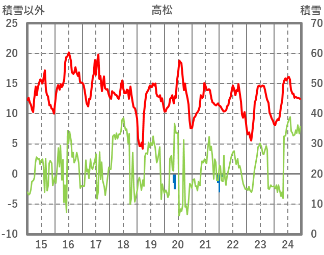 | 日 | 時 | 気温 | 降水 | 風向/風速 | 日照 | 積雪 | 降雪 |
