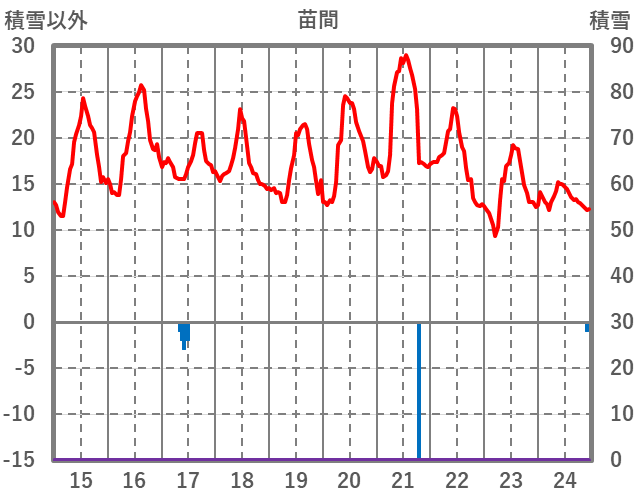 | 日 | 時 | 気温 | 降水 | 風向/風速 | 日照 | 積雪 | 降雪 |