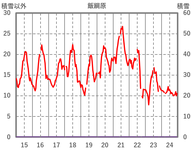 | 日 | 時 | 気温 | 降水 | 風向/風速 | 日照 | 積雪 | 降雪 |