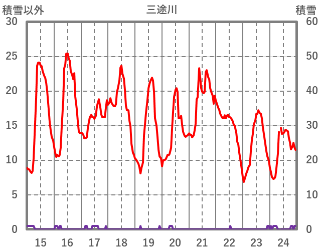 | 日 | 時 | 気温 | 降水 | 風向/風速 | 日照 | 積雪 | 降雪 |