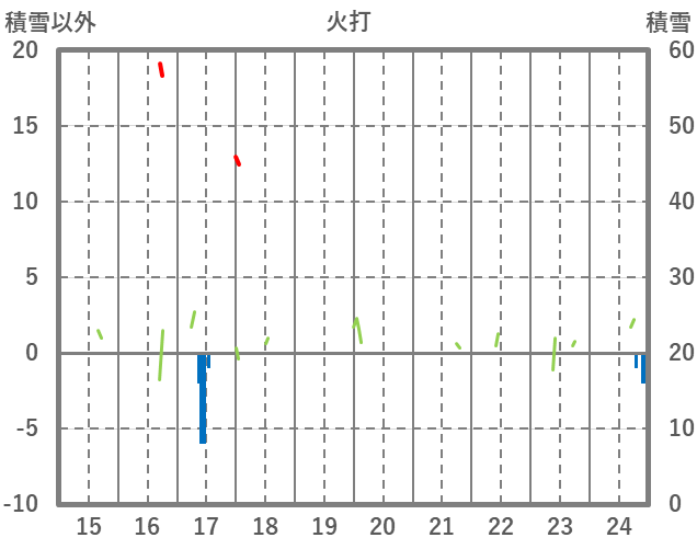 | 日 | 時 | 気温 | 降水 | 風向/風速 | 日照 | 積雪 | 降雪 |