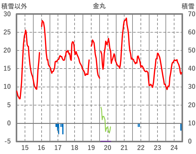 | 日 | 時 | 気温 | 降水 | 風向/風速 | 日照 | 積雪 | 降雪 |