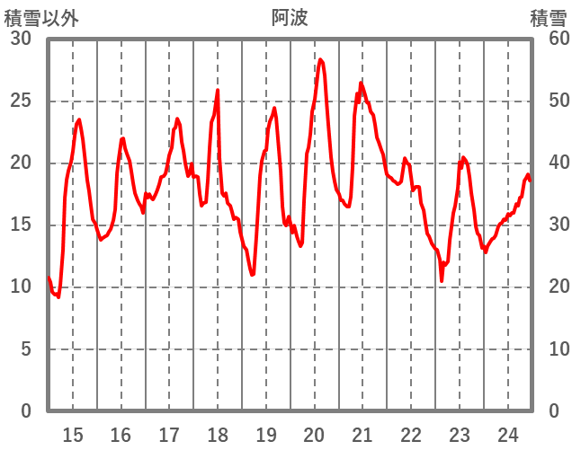 | 日 | 時 | 気温 | 降水 | 風向/風速 | 日照 | 積雪 | 降雪 |