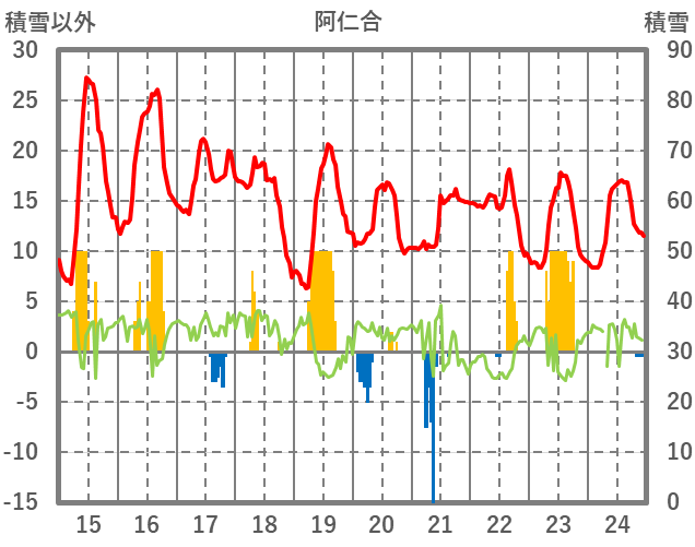 | 日 | 時 | 気温 | 降水 | 風向/風速 | 日照 | 積雪 | 降雪 |