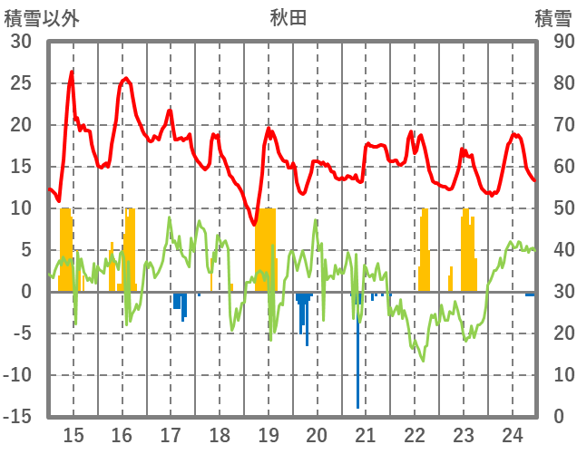 | 日 | 時 | 気温 | 降水 | 風向/風速 | 日照 | 積雪 | 降雪 |