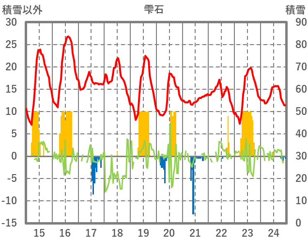 | 日 | 時 | 気温 | 降水 | 風向/風速 | 日照 | 積雪 | 降雪 |