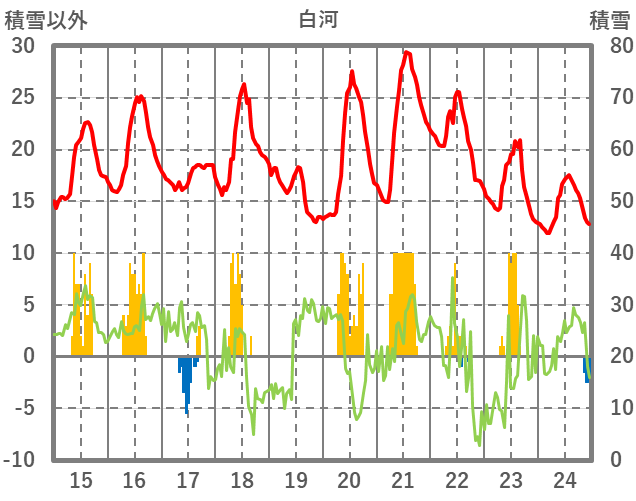 | 日 | 時 | 気温 | 降水 | 風向/風速 | 日照 | 積雪 | 降雪 |