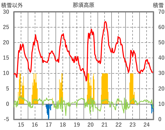 | 日 | 時 | 気温 | 降水 | 風向/風速 | 日照 | 積雪 | 降雪 |