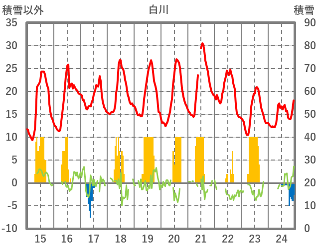 | 日 | 時 | 気温 | 降水 | 風向/風速 | 日照 | 積雪 | 降雪 |