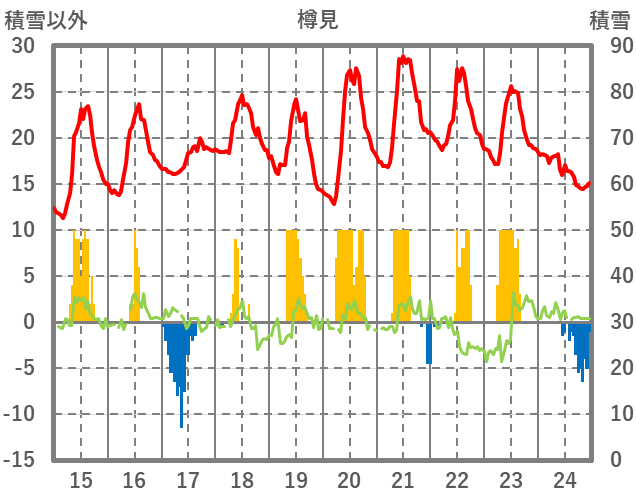 | 日 | 時 | 気温 | 降水 | 風向/風速 | 日照 | 積雪 | 降雪 |