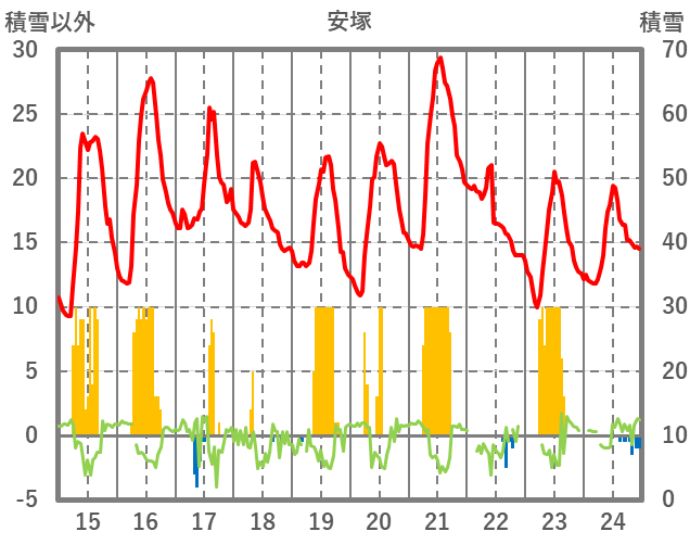 | 日 | 時 | 気温 | 降水 | 風向/風速 | 日照 | 積雪 | 降雪 |
