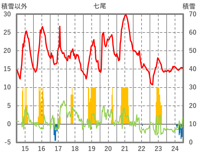| 日 | 時 | 気温 | 降水 | 風向/風速 | 日照 | 積雪 | 降雪 |
