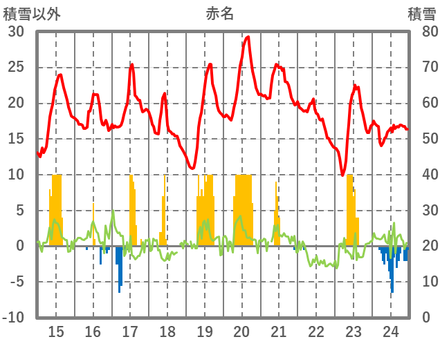 | 日 | 時 | 気温 | 降水 | 風向/風速 | 日照 | 積雪 | 降雪 |