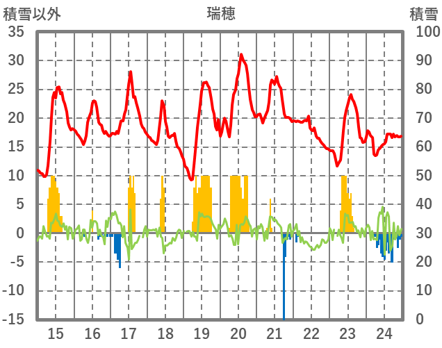 | 日 | 時 | 気温 | 降水 | 風向/風速 | 日照 | 積雪 | 降雪 |