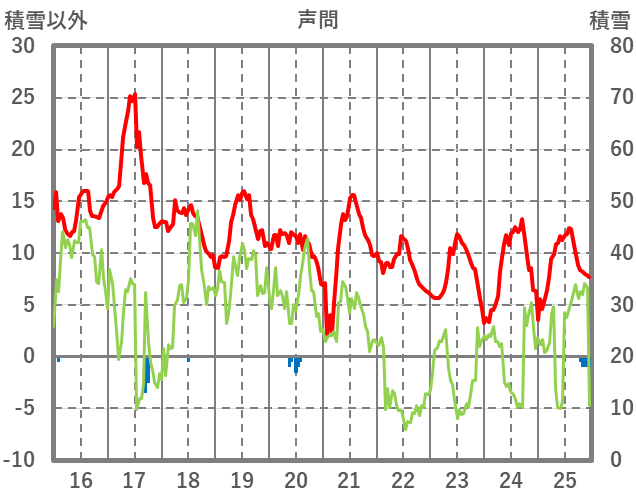 | 日 | 時 | 気温 | 降水 | 風向/風速 | 日照 | 積雪 | 降雪 |