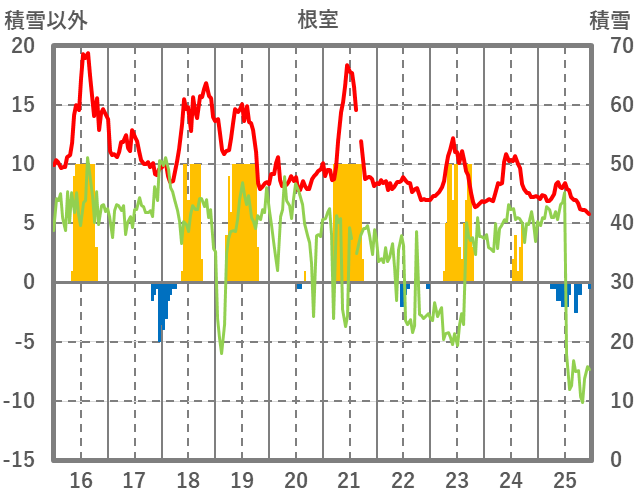 | 日 | 時 | 気温 | 降水 | 風向/風速 | 日照 | 積雪 | 降雪 |