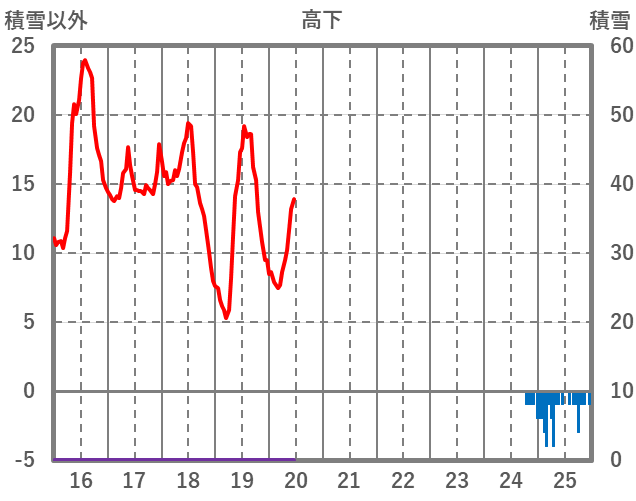 | 日 | 時 | 気温 | 降水 | 風向/風速 | 日照 | 積雪 | 降雪 |