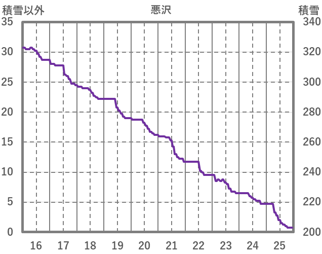 | 日 | 時 | 気温 | 降水 | 風向/風速 | 日照 | 積雪 | 降雪 |