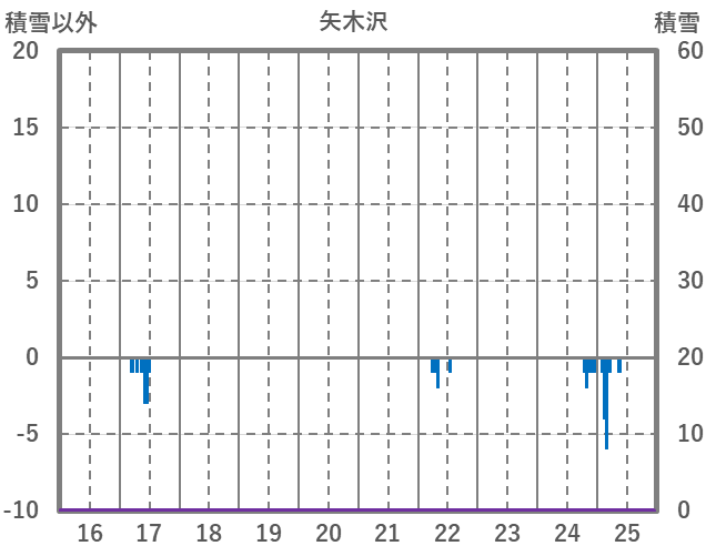 | 日 | 時 | 気温 | 降水 | 風向/風速 | 日照 | 積雪 | 降雪 |