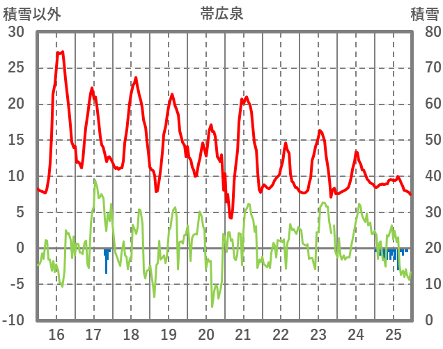 | 日 | 時 | 気温 | 降水 | 風向/風速 | 日照 | 積雪 | 降雪 |