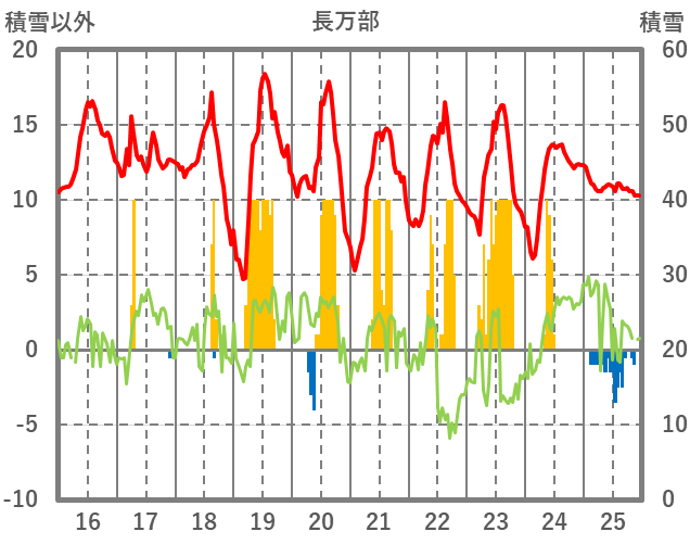 | 日 | 時 | 気温 | 降水 | 風向/風速 | 日照 | 積雪 | 降雪 |
