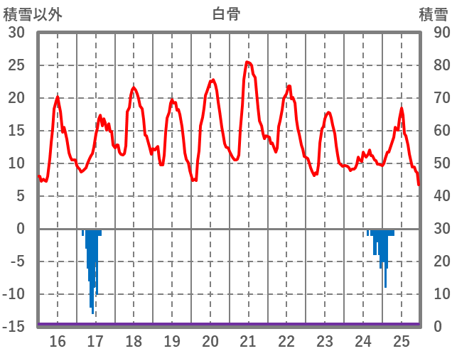 | 日 | 時 | 気温 | 降水 | 風向/風速 | 日照 | 積雪 | 降雪 |