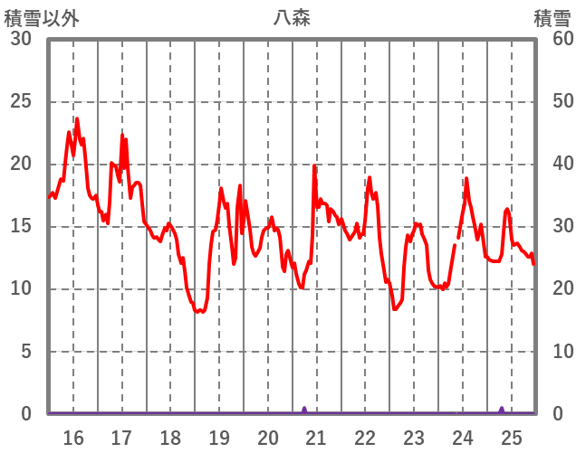 | 日 | 時 | 気温 | 降水 | 風向/風速 | 日照 | 積雪 | 降雪 |