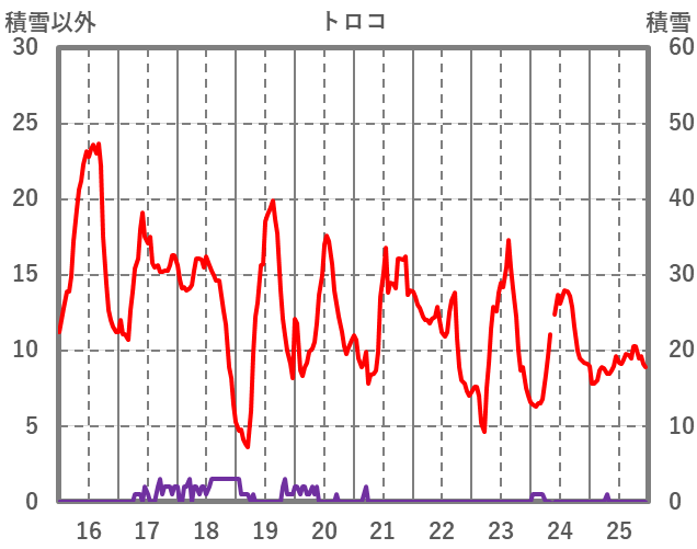 | 日 | 時 | 気温 | 降水 | 風向/風速 | 日照 | 積雪 | 降雪 |