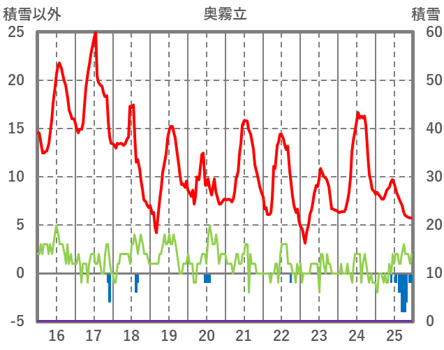| 日 | 時 | 気温 | 降水 | 風向/風速 | 日照 | 積雪 | 降雪 |