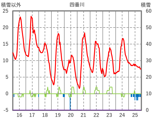 | 日 | 時 | 気温 | 降水 | 風向/風速 | 日照 | 積雪 | 降雪 |