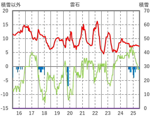 | 日 | 時 | 気温 | 降水 | 風向/風速 | 日照 | 積雪 | 降雪 |