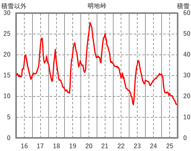| 日 | 時 | 気温 | 降水 | 風向/風速 | 日照 | 積雪 | 降雪 |
