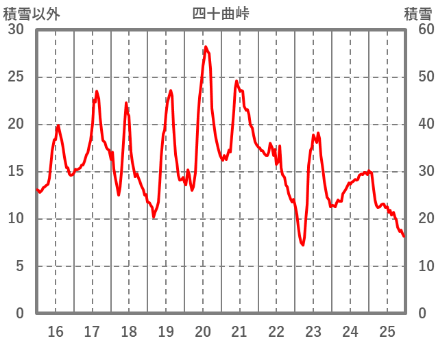 | 日 | 時 | 気温 | 降水 | 風向/風速 | 日照 | 積雪 | 降雪 |