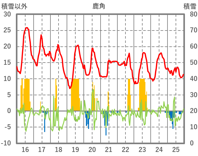 | 日 | 時 | 気温 | 降水 | 風向/風速 | 日照 | 積雪 | 降雪 |
