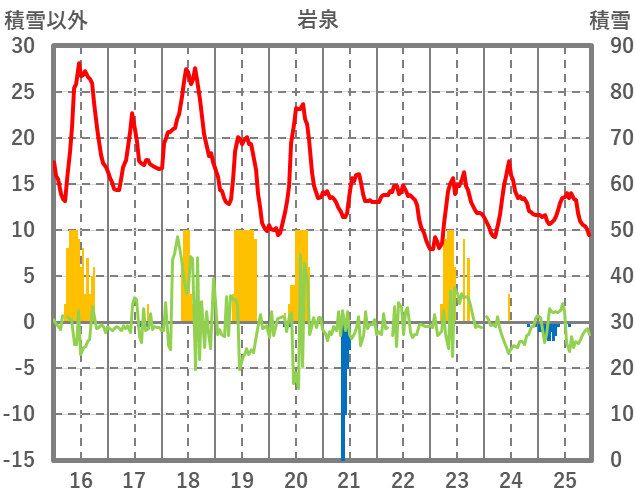 | 日 | 時 | 気温 | 降水 | 風向/風速 | 日照 | 積雪 | 降雪 |