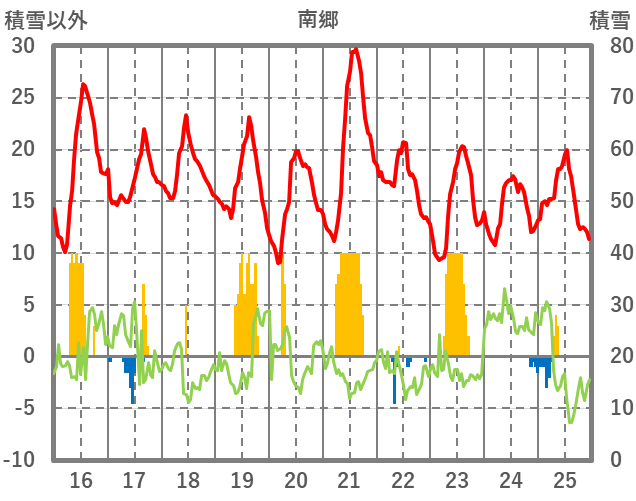 | 日 | 時 | 気温 | 降水 | 風向/風速 | 日照 | 積雪 | 降雪 |