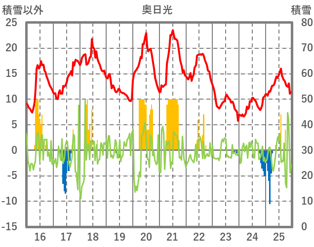 | 日 | 時 | 気温 | 降水 | 風向/風速 | 日照 | 積雪 | 降雪 |